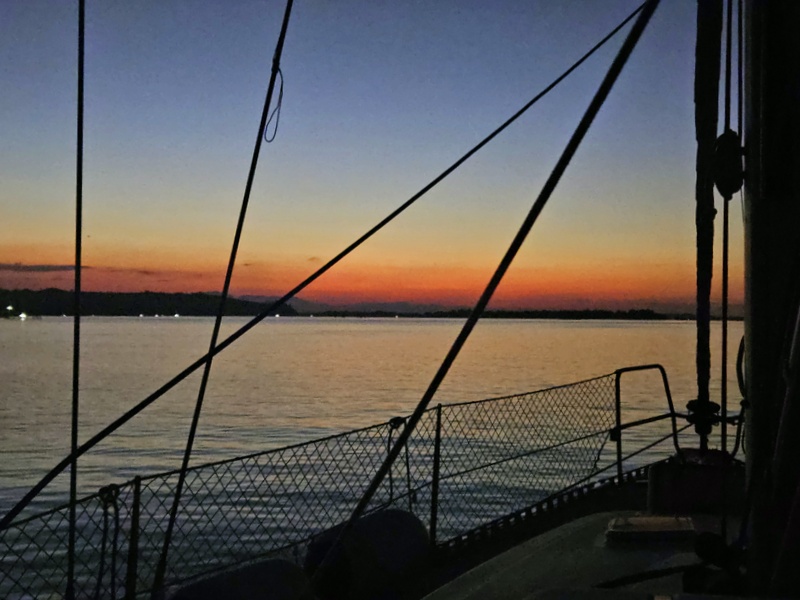Danes sva celo nekaj časa lepo jadrala. Ob svitu, ko sva izplula in ob pristanku sva ropotala, vmes sva imela uro ali dve celo 11-12 vozlov polkrmnega vetra skupaj s tokom je Mala dosegala vratolomno hitrost preko šest vozlov. No, ja... vseeno bolje kot motoriranje s petimi vozli.