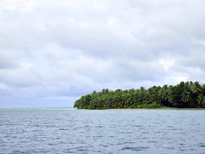 Na obalo ne greva. Razlogov je več. Najpomembnejši je, da nočeva biti na obali, ker se bojiva, da bi nama ravno takrat domačini na barko prinesli kokosovega raka kot darilo. Ali pa še kaj bolj okusnega. Jastoga, na primer. Tega ne želiva zamuditi. Pogled na koledar razkrije dejstvo je, da je danes nedelja. V nedeljo nimava med domačini kaj za početi. Oni molijo. In med molitvijo ne nosijo naokoli rakov, hmmm... Moti naju pa tudi dež. V dežju vožnja z dingijem ni ravno vrhunec zabave. Ker sva na barki, sva zagnala ekološki watermaker in pridno zbirava vodo.