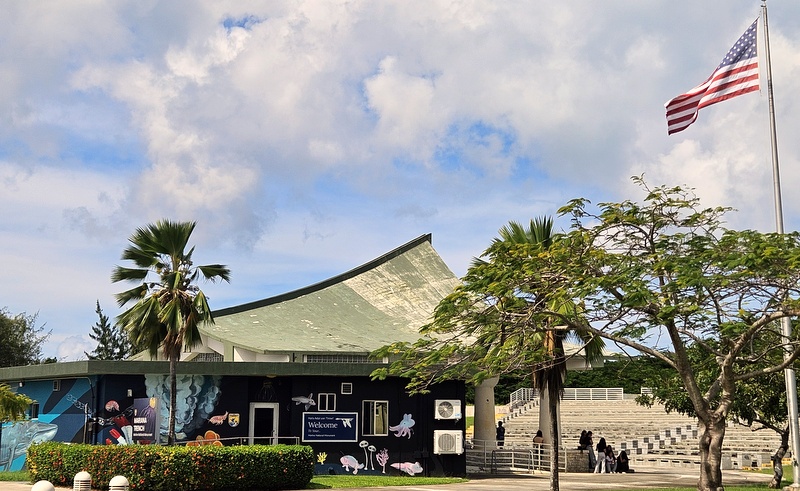 Potem se odpraviva na kosilo. Zgodnja sva in imava vmesno postajo v visitor centru American Memorial Parka. No, imela sva to v načrtu, pa je ob ponedeljkih zaprt. Nasproti vhoda je urad Mariana Marine Parka z razstavo o flori in favni Marianskega jarka. Zanimivo, zelo zanimivo. Pogledava si celotno zbirko kratkih filmov iz globin Pacifika, navdušena sva. Precej dlje sva ostala, kot sva planirala (pravzaprav tega sploh nisva planirala, sem sva zavila, ker je bil visitor center zaprt) in ura je preko tri popoldan, ko nama rangerka diskretno pove, da ob treh zapirajo.