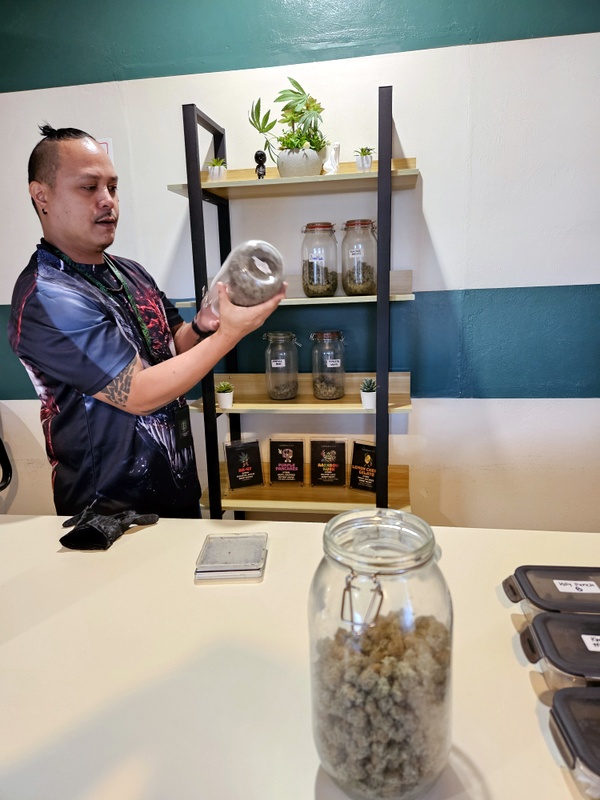 In potem na kosilo. Hoja po vročem soncu je na začetku zelo prijetna. Tokrat sta najini telesi močno podhlajeni. Klima v visitor centru Mariana Marine Parka je bila naštimana na zimske razmere v Sloveniji. Kaj so pri nastavljanju zamešali stopine Celzija s stopinjami Farenheita? V nadaljevanju neletiva na prodajalno kanabisa. Marihuana je tukaj legalna, lahko se jo kupi v trgovini in uporablja. V neomejenih količinah. Za naju nekaj novega. Cena pa ni zanemarljiva, 10 dolarjev na gram. Vseeno pa je to ceneje, kot pivo. Glede na efekt. Končno sva na poti na kosilo. Pa nisva. Vmes je še pekarnica z dobrim kruhom in trgovina Levis s polovičnimi cenami glede na Ljubljano.