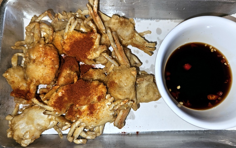 In potem se le nekako primigava do vietnamske restavracije. Nekaj stvari je dobrih, nekaj povprečnih. In spet sva začetnika pri naročanju. Ker ne znava vietnamsko in ker sva tako freh, da ne prosiva gugla za prevod, naročava juho in misliva, da je to tagliata. Na srečo je natakarica ocenila, da ne veva, kaj bi rada in naju je do časa opozorila. Za sladico si je Vesna omislila mini rakovice, ki se jedo kot snack. Nekaj podobnega kot Simi šrimpki v Grčiji in Turčiji.