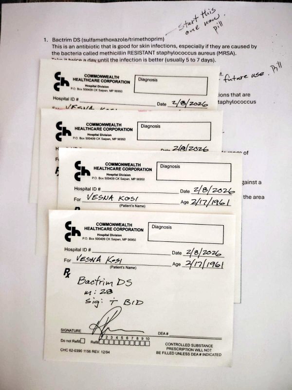 Dopoldan Šarka javi, da ima recepte za Vesno. Kmalu nato pride in skupaj gresta v lekarno po zdravila. Zdravila niso poceni, zdravnik je bil gratis.
