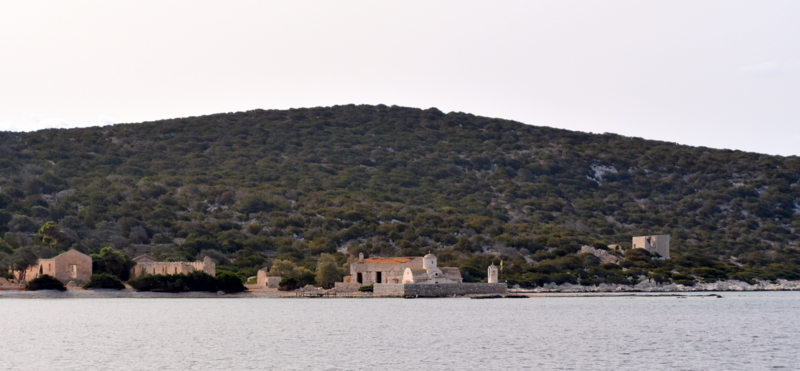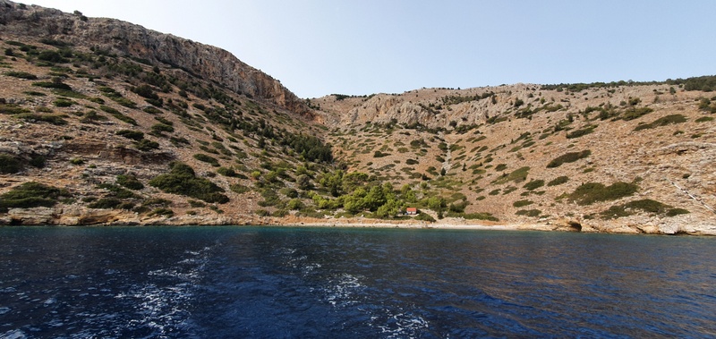 Ampak, Panormitis je precej poln. No, to pomeni, da je tam že sidranih pet bark (prostora je za nekaj deset) in najboljši prostor je tudi tukaj že zaseden. Zasedajo ga Izolčani. Tisti, ki smo jih srečali na Nisirosu in govorijo italijansko. No, danes se ne bova šla čoporativnosti in se sidrava lepo stran od ostalih.