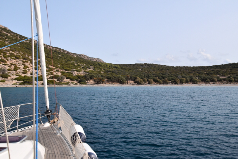 No, za dnevni postanek je v redu, v sili bi lahko tudi noč prebila tukaj. Val se sicer vali, ni pa velik in dokler je nekaj vetra, ki drži Malo v val, se ga niti ne občuti. Vesna gre pod vodo. A je kmalu nazaj. Ob skalah pa je vseeno le preveč vala in snorklanje zna biti hitro boleče. Dvigneva sidro in via Panormitis, kjer je preverjeno mirno. In je tudi internet...