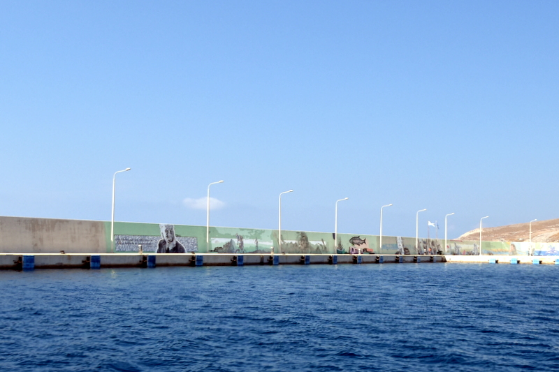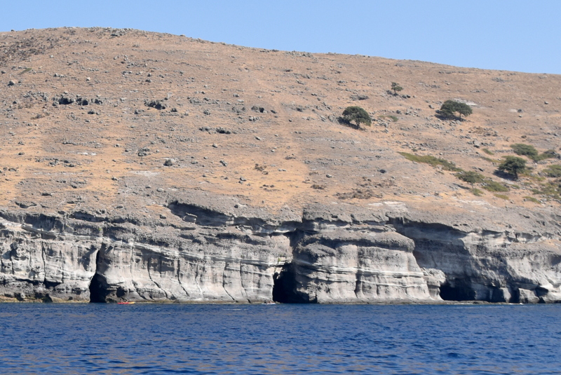 Plan je bil, da pristaneva na Ag. Eustratiosu. Ob štirih popoldan sva v luki, kjer je na notranji strani pomola prostora za tri in na zunanji strani za dve jadrnici. Notri so štiri (v kot sta se stlačili dve s kljunom naprej - ej, če pihne, bo kažin!), zunaj je ena motornjača v nekaj štukov ( in temu primerno dolga) in zaseda oba jadrniška priveza. In ena barka je na sidru pred luko. Za naju ni prostora. Alternativa, zalivi v okolici, odpade. Primerni so za meltemi, ne pa za severozahodnik in možne nevihte, kot kaže današnja napoved. Če bo držala.