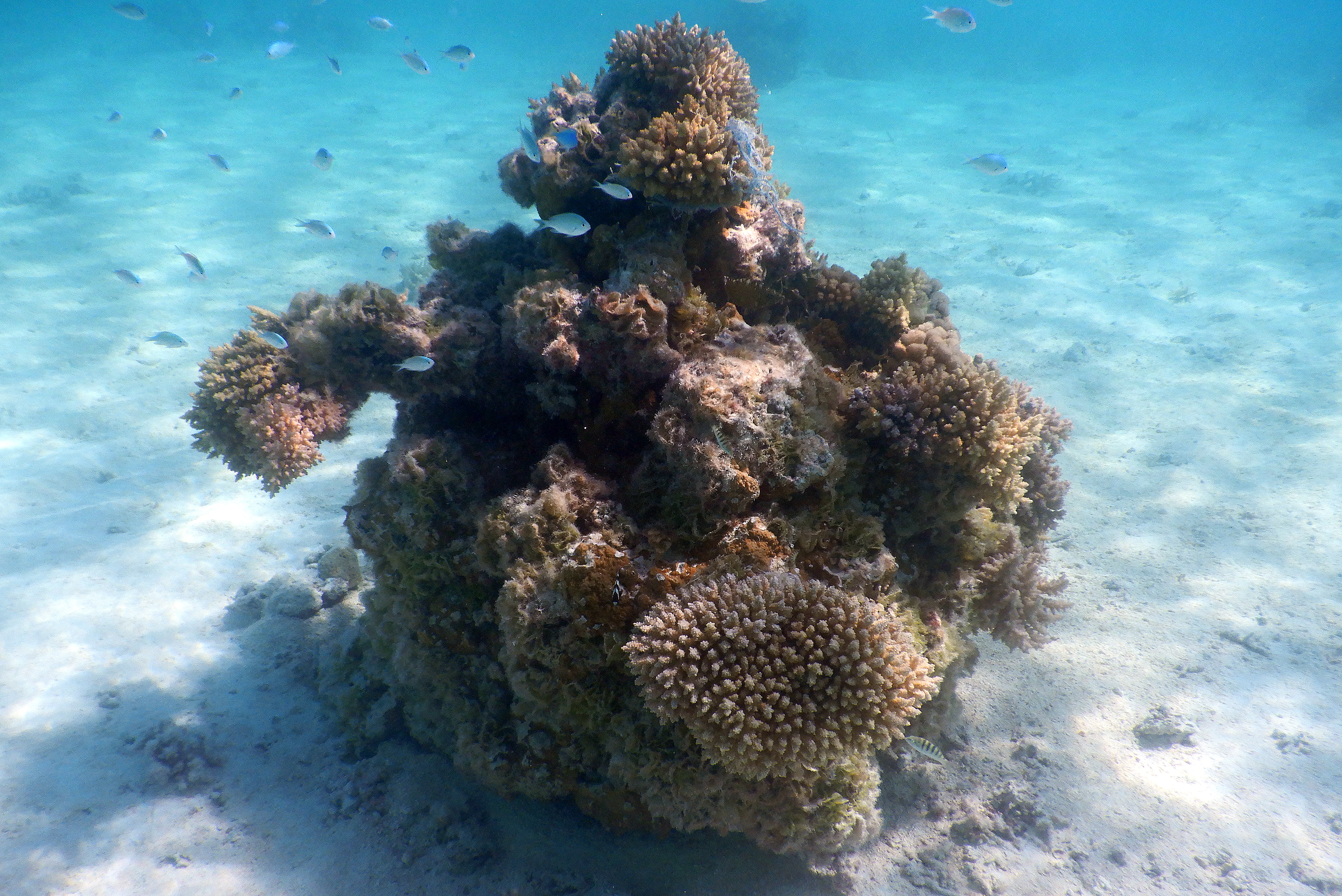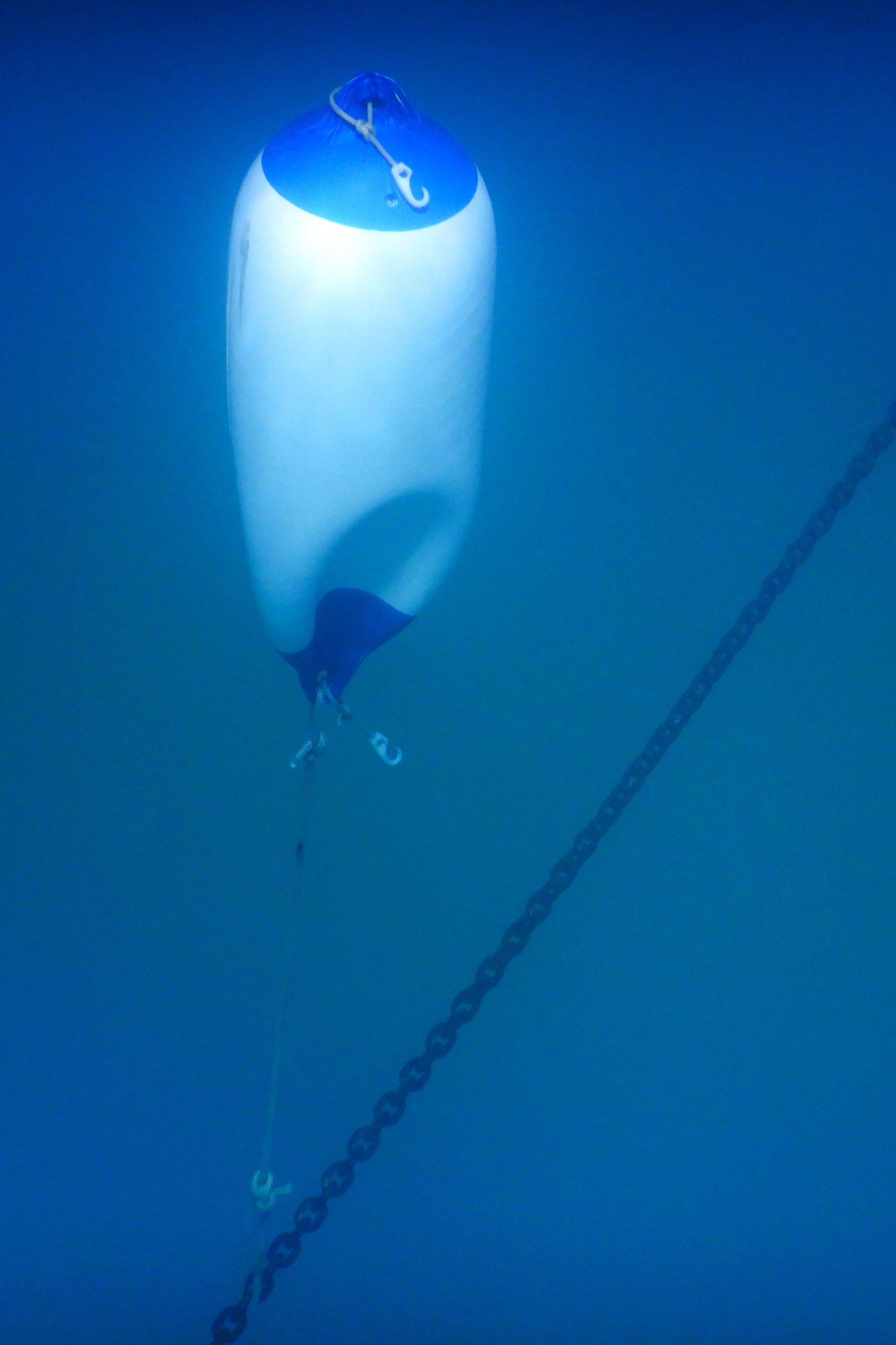 Sidrana sva na mestu, kjer je malo koralnih glav(ic) na peščenem dnu. Ampak, to je tako samo tukaj. Če se premakneva, bova imela okoli sidra vse polno koral. Vreme je benigno in zato sva poskusila s sidranjem s t.i. floating chain. Verigo se s plovci privzdigne, da se ne zapleta v koralne glave na dnu. Ker plovcev nimava, sva uporabila kar fenderje. Uspeh je bil polovičen. Jutri bova morala vajo ponoviti z nekaj izboljšavami. Predvsem bo potrebno dati plovce bolj na gosto in uporabiti tudi balon. Šele, ko bova to naštudirala, si bom upal sidrati na minskem polju.