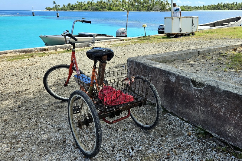 Plujemo mimo atola Kaukura, ki nima prehoda v laguno. Ladja na otoku ne more pristati. Vidimo nekaj, kar ni ravno običajno. Oskrbovalna ladja miruje sto ali dvesto metrov od obale atola in otočani s čolni prevažajo robo med ladjo in majhnim mandračem, izklesanim z zunanje strani atola. Lepo počasi.
