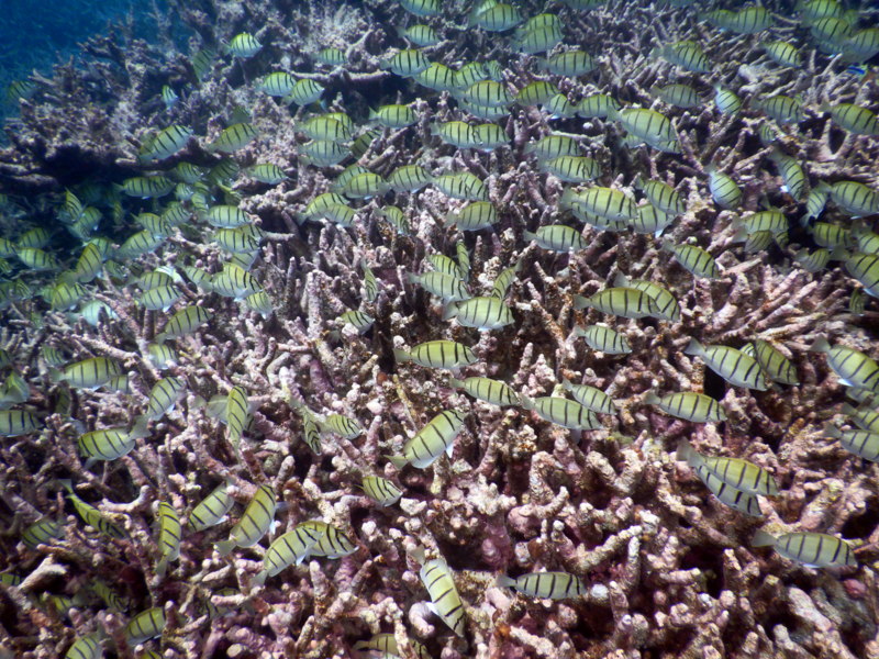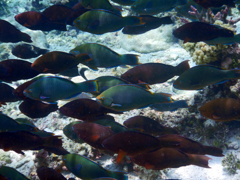 Danes se odločiva ostati na mestu, kjer sva že od včeraj. Vesna bi rada presnorklala še tisti konec, ki je na NFL označen kot super-truper snorklarija. Z dingijem jo odpeljem tja, ni ravno blizu. V treh urah potem priplava nazaj in pove, da je tam še najslabše na tem koncu atola. Jah, okusi so različni.