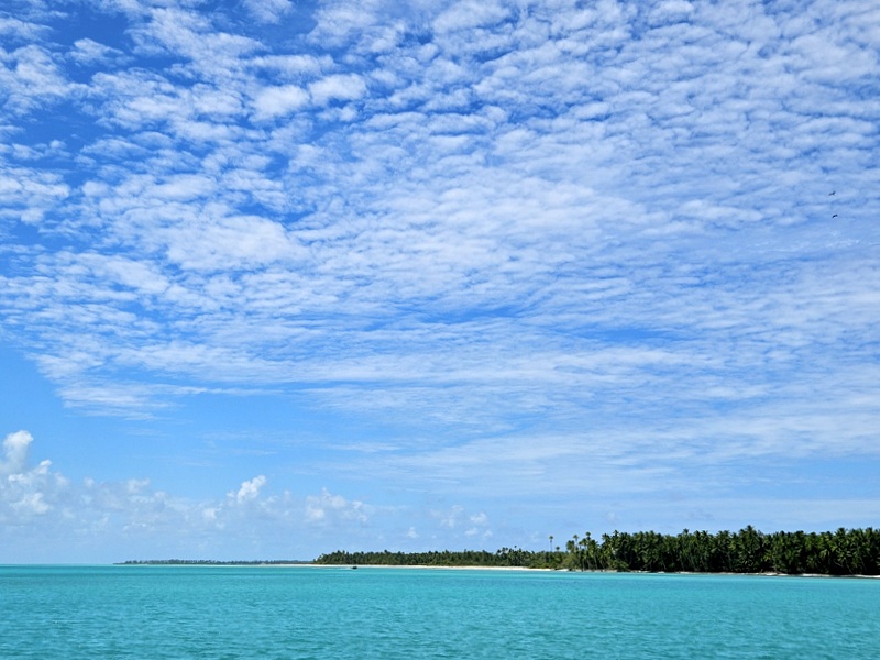 Zato se odpeljeva kar na severni konec atola. Bolj zato, da menjava lokacijo, kot zato, da bi upala na kristalno čisto morje. Morje je mlečno, tako kot drugje, kjer sva do sedaj bila na Tarawi in Abaiangu.