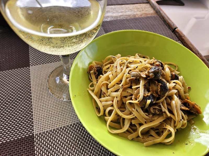 Jaz se lotim dela, Vesna se loti priprave včeraj nabranih vongul. Vroče je, vetra ni. Je pa vsaj sončno in ne preveč soparno.