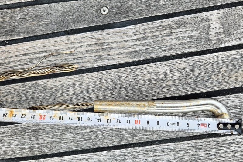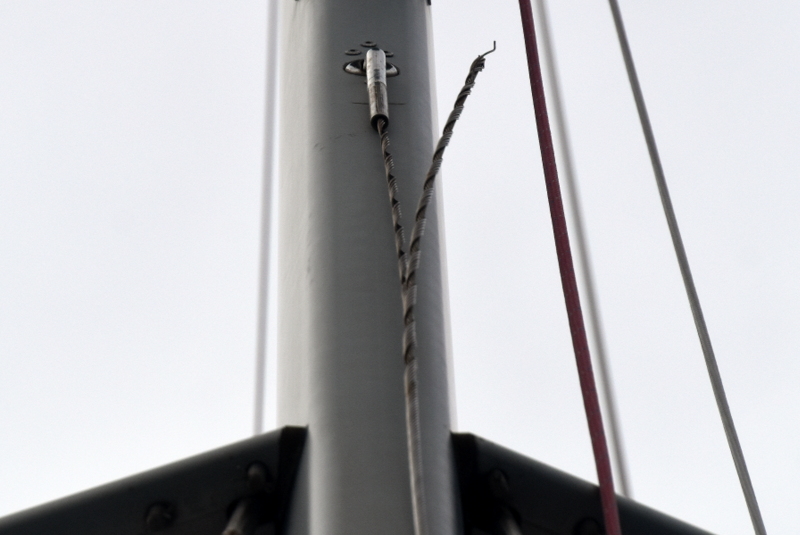 Danes ne dežuje in lahko se ukvarjava s popravili zunaj kabine. Najprej snameva natrgano pripono, jo temeljito premeriva in posredujeva podatke v naročilo za izdelavo nove. Guy nama je posodil električni vinč, da me bo Vesna lažje dvignila na jambor. Pa se je izkazalo, da zadeva ne deluje, kot je reklamirana. Že davno sem jo mislil kupiti, pa sem nihal pri odločitvi. Upira se zakonom fizike, konkretno tretjem Newtonovem zakonu, ki opisuje silo akcije in reakcije in sem takrat od nakupa odstopil. Pravilna odločitev. Ni kaj, čarovnije so možne le v pravljicah in religijah, zato me je Vesna na jambor dvignila po klasični metodi z vrtenjem ročke na nižji hitrosti.