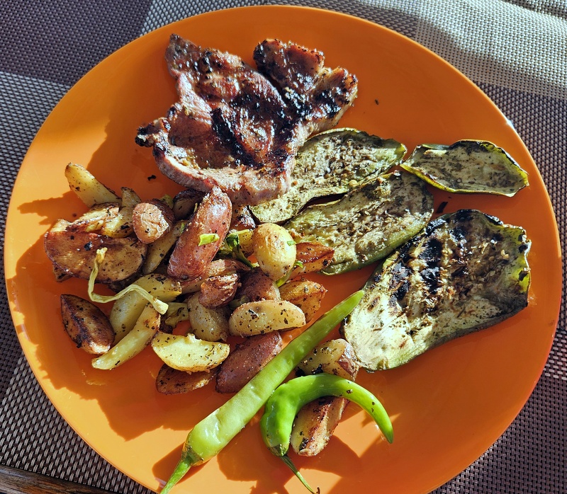 Tako, z vsemi potrebnimi energenti smo preskrbljeni, z dieslom, bencinom, vodo, plinom, ogljem, vinom, pivom in mesom. Če k temu dodam še nekaj malega zelenjave, mleka in jajc, sva pripravljena na odhod. Ampak. Sedaj pa vreme ni v redu. Veter je precej severni, nama v nos. Torej, še ne greva.