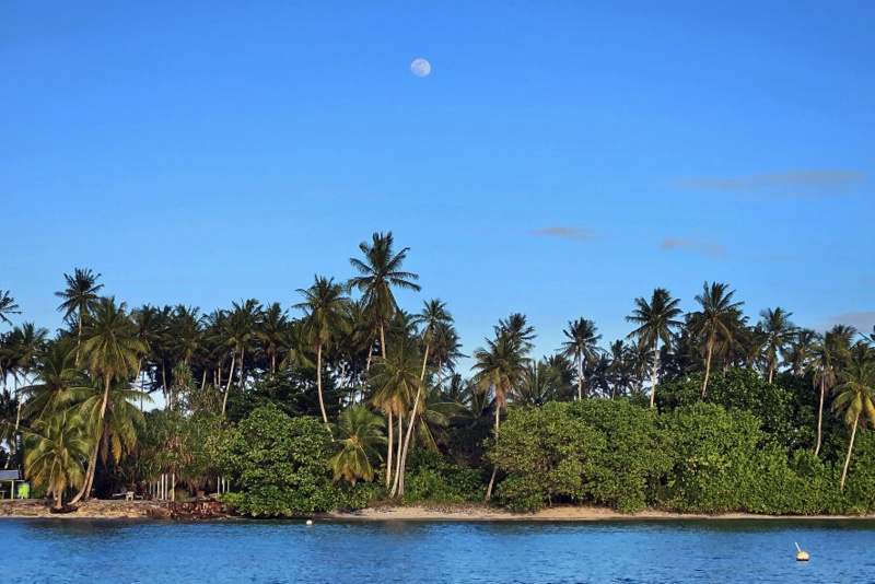 Vedriva za otočkom Anemwanot, privezana na eno izmed boj jahtaškega kluba, ki jo lahko brezplačno uporabljava, ker sva člana tega kluba. Sosed je Rob, drugih živih tukaj ni. Povabim ga na klepet in s seboj prinese kavo v stiroporu. Američan. Pot luck kultura. Ne vem, kako bi mu razložil, da je Mala slovensko ozemlje in da v Sloveniji velja, da če nekoga povabiš, ga tudi nahraniš in napojiš.