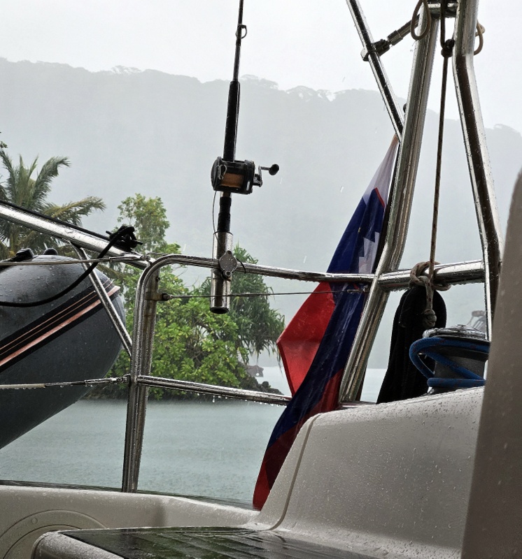 Že včerajšnji dan je bil precej deževen, ponoči in danes pa je deževalo brez predaha. In ko v tropih dežuje, potem Dežuje. Imava pa problem. Ni nama potrebno delati vode, ta kar sama od sebe priteče iz cevi na pontonu, če se le odpre ventil na pipi. Ob tem dežju bi Malin ekološki deževni watermaker (dvajsetlitrska banjica za perilo) pridelal vsaj sto litrov vode na dan, morda celo več. Kakšna ekološka škoda se dela, če je barka priključena na vodovod!