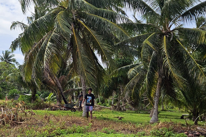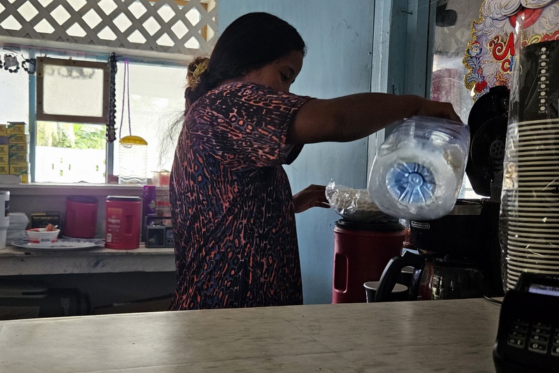 Ljudje ne govorijo prav tekoče angleško, pozdravijo pa vsi po vrsti. Šolarji, ki so nabirali kokos so nama takoj dali dva, Vesna je pa otrokom takoj dala bombone. V kafiču, kamor zahaja župan, sva si kupila kavo (druge pijače nimajo). Plačala bi lahko s telefonom na POS terminalu. Halo?!