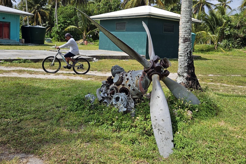 Potem greva naokoli. Wotje so nama opisali, kot zelo urejen atol, pa se osebno s tako oceno težko strinjam. Zasmeten je precej bolj, kot Maloelap, celo bolj, kot Majuro, kar je za atole precej neobičajno. Poti so makadamski kolovozi, razen dela, kjer se še vidi nekaj 80 let starega japonskega betona (kolikor ga je sploh ostalo nepoškodovanega po ameriškem bombardiranju med drugo svetovno vojno - popravljali ga potem itak niso). Nekako se da slutiti betonirano letališko stezo in dva pomola, ki sta še dobro ohranjena, a brez funkcije. Domačini čolne potegnejo na mivkasto obalo. Na enem izmed pomolov je privezan le lokalni coastguard gliser, donacija Japonske, ki se verjetno nikoli ne uporablja. Novo letališče je narejeno sredi otoka. Ni betonirano ali asfaltirano in nima upravne zgradbe. Menda se na travi bolj mehko pristaja. Zato imajo pa precej tovornjakov (donacija kaj-vem-koga), delovnih strojev (donacija Japonske) in čisto pravo elektrarno (donacija Tajvana) ter kar nekaj težkih motorjev, ki najbolj spadajo na avtocesto in ne na atolski kolovoz (donacija izseljencev v ZDA).