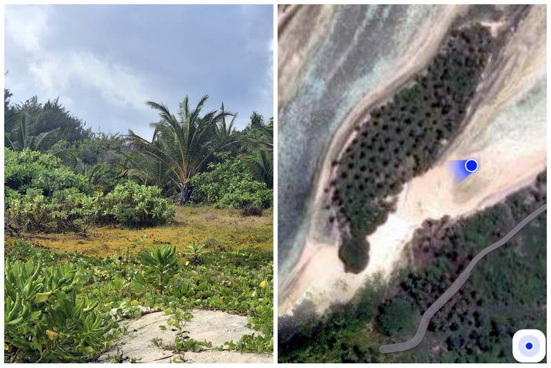 Kakorkoli, narediva sprehod po otoku, da prideva do preliva med tem in naslednjim otokom v atolu. Vsaj na guglovih mapah je tako označeno. V resnici je pa preliv čisto spodobno poraščen s palmami in ostalo vegetacijo. Prvič sem doživel, da se satelitski posnetek ne ujema s stanjem v naravi. Verjetno so mojstri, ki posnetke sestavljajo, kaj pomešali. Ali pa je to pomešala AI?
