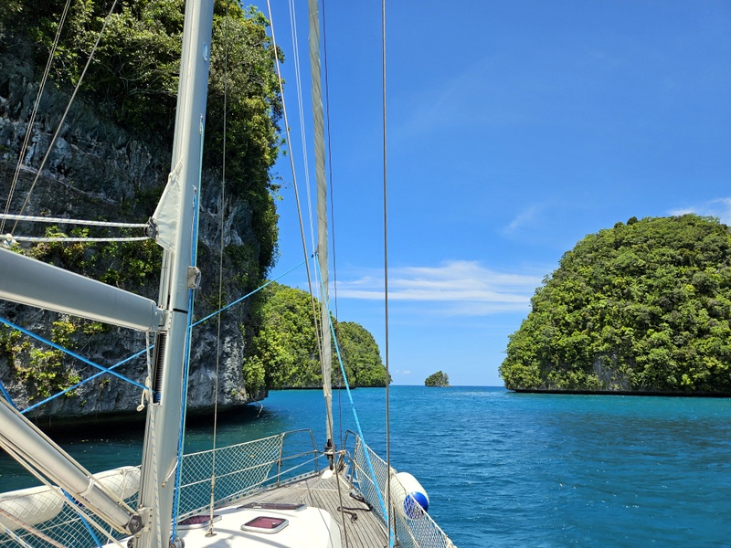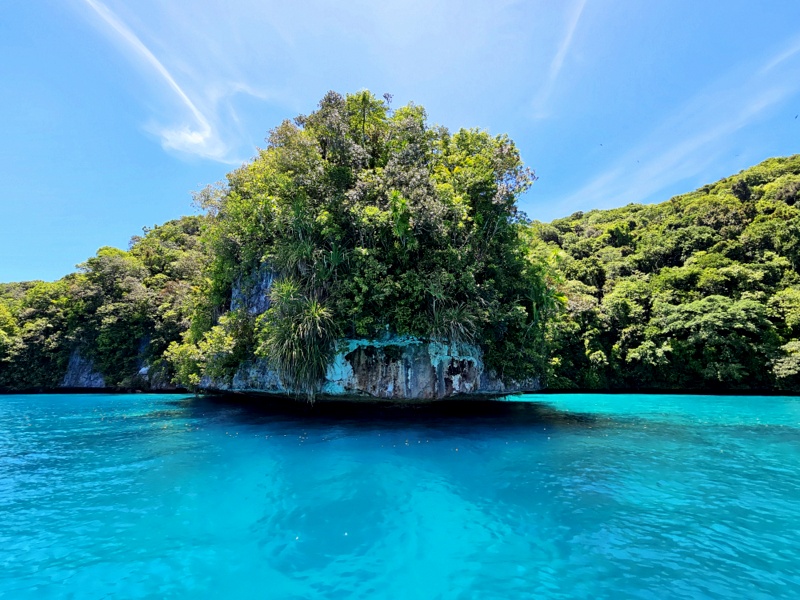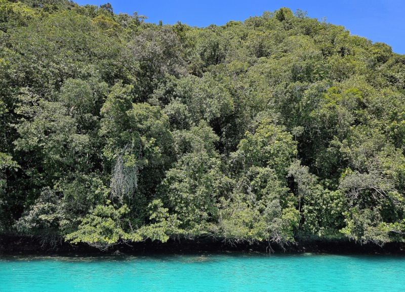 Permit za Rock Islands se danes lahko kupi tudi za jutri. Včeraj se ni mogel niti za danes, niti za jutri. Vedno je v veljavi od tekočega dneva dalje, so naju podučili. Razen ob nedeljah, ko je možno izbirati med veljavo z nedeljo ali s ponedeljkom, so dodali danes. Logično, mar ne? In tega teta inkasantka rangerka včeraj še ni vedela. Obup! Kakorkoli, vrneva rentiča, zapeljeva Malo na ponton yacht cluba, natočiva gorivo in vodo ter odplujeva na sidrišče blizu yacht cluba, kjer sva v turkiznem morju sama s krokodili.