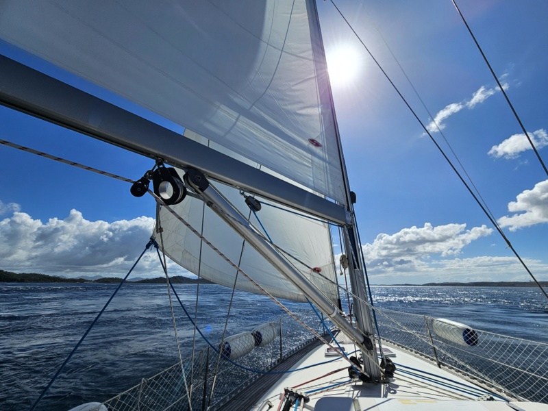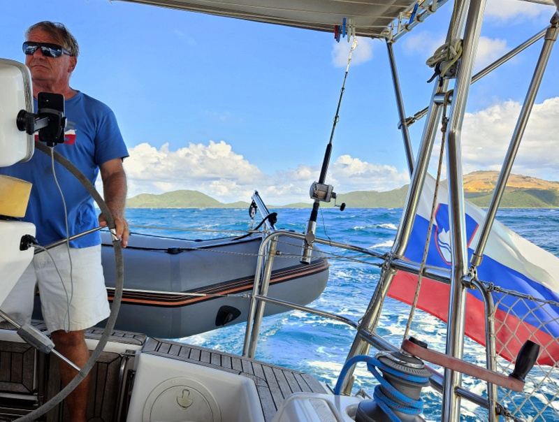 Ampak. Preden prideva do otoka, je bilo (skoraj) po mojih pričakovanjih. Potem se je pa začelo. Tok v nos in malo sem, malo tja. Vrtinci. Največ sem ga nameril 6,7 vozla, nikoli manj, kot, le občasno 5,5. Obraščena, kot je po 5000 miljah z antifoulingom International, Mala na motor dosega hitrost 5 vozlov pri 1600 obratih. Še dobro, da sva imela veter! Polkrmni veter. Pa ta kmalu ni bil zadosti, čeprav naju je gnal s 6-7 vozli. V nekem trenutku (ok, res samo za nekaj minut) je bil COG -0,8 vozla. Tako sedaj vem, kako se jadra v rikverc. Ne zna tega vsak! Za dobro miljo okoli rta sva potrebovala skoraj 4 ure. Vetra sva imela 4-5 bf. A ker samo veter ni bil dovolj, sva motorsailala. Ubogi Yanmarček se je ves čas vrtel z 2000 obrati (upam, da bo jutri še delal)! Še nekaj se je pokazalo zanimivo. Instrumenti so mi kazali 21-24 vozlov resničnega vetra. Pri izračunu se uporablja hitrost po vodi. Torej, od tega izračuna je potrebno odšteti 6-7 vozlov in se pride do pravega vetra.