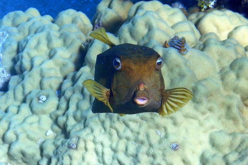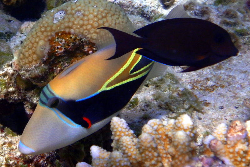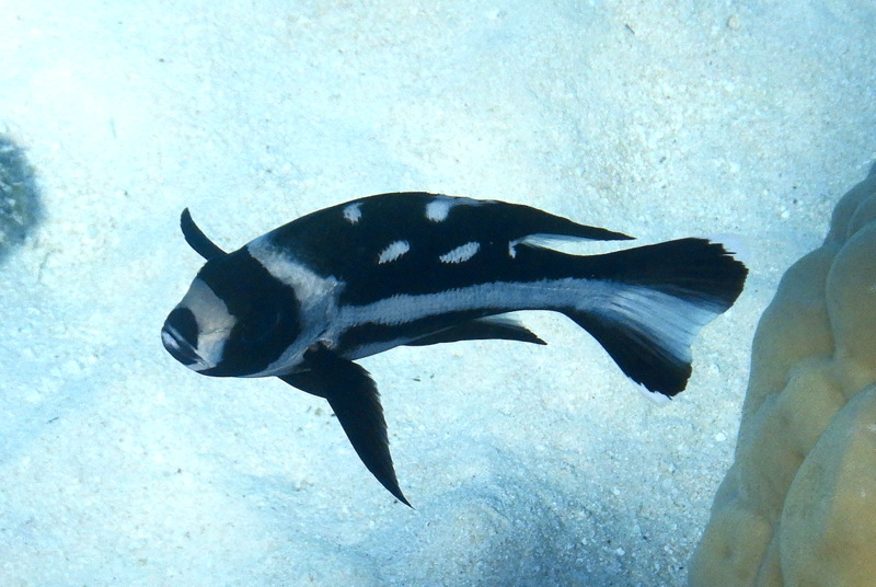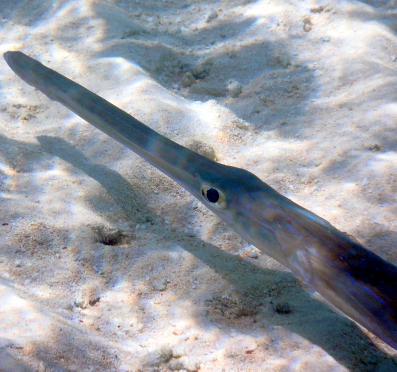 Vesna gre pod vodo. Greben je lep, raznobarven, manjkajo pa šarkiji. Nasploh je bila nad snorklanjem na Maloelapu večinoma zelo zadovoljna. Verjetno tudi zato, ker je voda res kristalno bistra in se vidi na deset metrov oddaljenih tleh vsaka podrobnost. Na meter oddaljeni koralni glavi pa še toliko bolj. Vendar. Na štirih metrih globine se sidra ne vidi. Do vratu je zakopano.