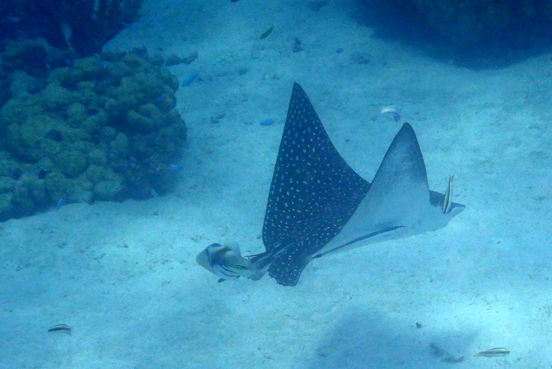 Jadranje je bilo prijetno, s polkrmnim vetrom 5 Bf in precej skrajšanimi jadri. Problemi so se začeli pri sidranju. Satelitske fotografije, ki so obetale enostavno sidranje, niso pokazale vseh podrobnosti. Dno na platoju s primerno globino ni mivka, ampak skalno dno s tanko plastjo mivke in pa z gosto nasejanimi skalami (manj kot meter je med njimi). Neprimerno za sidranje. Poskusila sva za tremi otočki in povsod je bil rezulatat enak, efekt je defekt. Uro in pol sva potrebovala, da sva končno našla luknjo v skalnem dnu, napolnjeno z mivko, kjer se je sidro lahko zakopalo. Saj, ko sva se zapeljala preko, se je takoj videlo na skenerju dna, da bo v redu, ampak, do sem je bilo potrebno preskenirati nekaj milj obale.