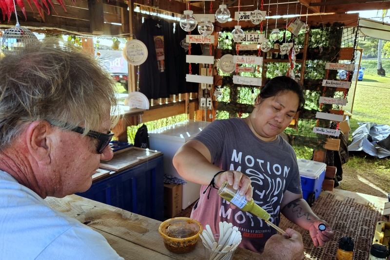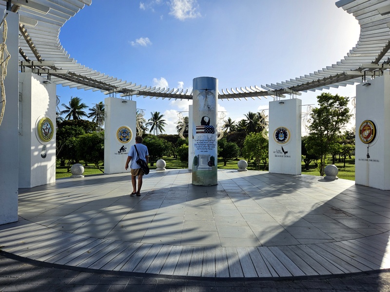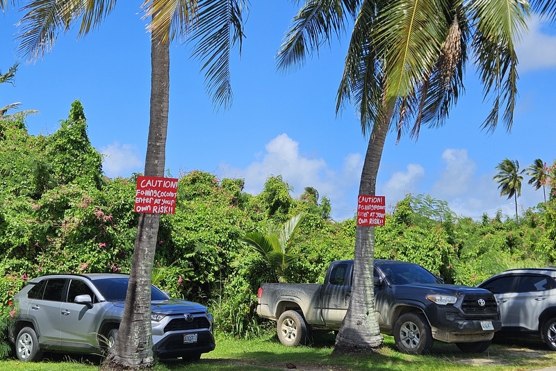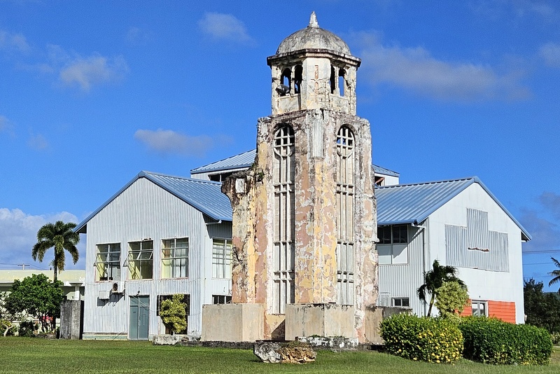Sprehod po vasici. V glavnem vidiva drevesa. In nekaj hiš. Preseneti naju zelo razbit objekt s križem na strehi. Za razliko od ostalih cerkva v Mikroneziji, ta ni videti niti najmanj reprezentativno. Če to sploh je cerkev? Ampak, drugega objekta, ki bi bil podoben cerkvi, nisva videla. In ja, vse trgovine so v lasti Kitajcev, gostilne pa Filipincev.