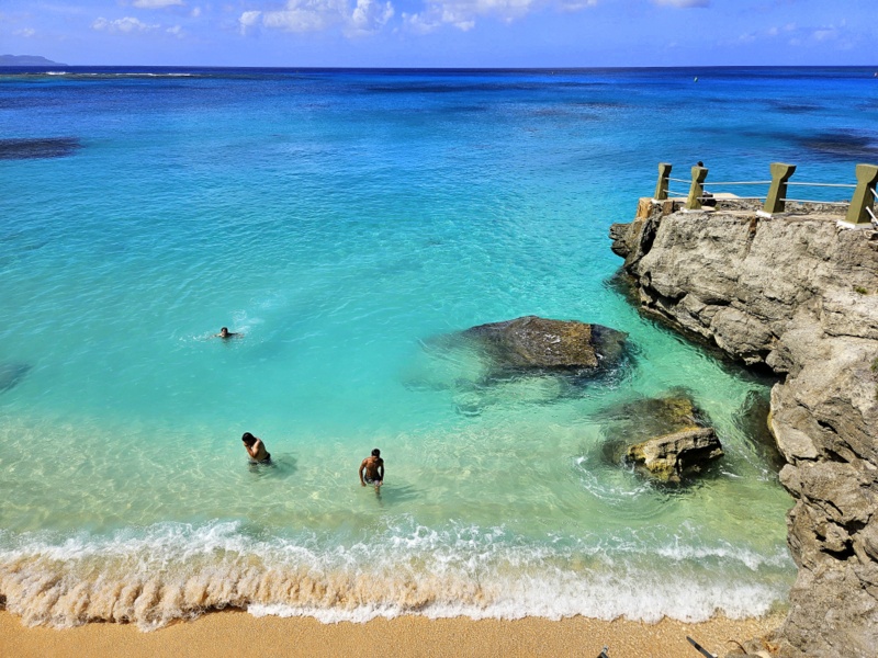 Poleg nedelujočega casinoja, reliktu iz časov kitajskega turizma, je čudovit park in plaža. Taka, s pečinami za skok v morje, čudovito mivko za poležavanje in koralnim grebenom za snorklanje. V lepem vremenu je to idilična počitniška destinacija. John posnorkla, ostali ga le opazujemo.